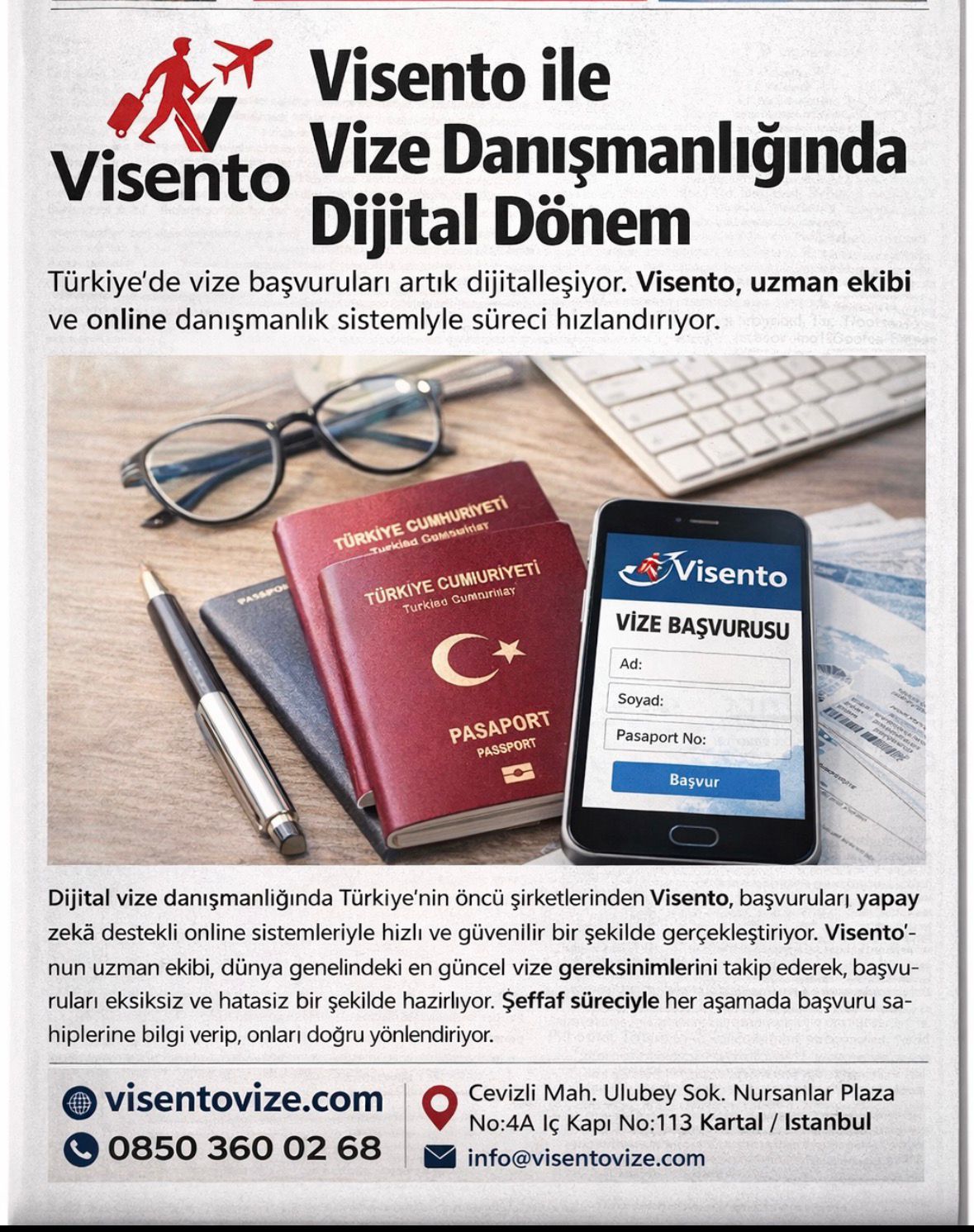 Dünya artık daha ulaşılabilir. Visento Vize, yalnızca vize almakla kalmayıp, danışanlarının seyahatlerini planlamalarına da destek veriyor. Profesyonel kadrosu ve müşteri odaklı hizmet anlayışıyla firma, yurt dışı seyahati hayallerini gerçeğe dönüştürmek için güvenilir bir rehber olmaya devam ediyor.